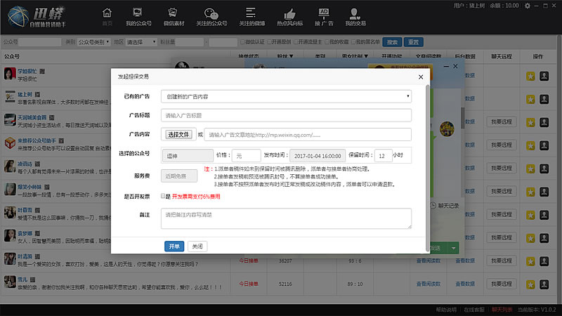 有了粉丝基础就可以考虑慢慢开始接一些广告,赚取运营以来的第一桶金。目前有很多第三方的交易平台,这里推荐一款交易助手软件——迅蟒自媒体助手(www.xunmang.com),可以帮助广大号主做好日常的公众号运营工作,好用的编辑器可以让每天编辑文章变得轻松有趣,微博、微信公众号和实时热点,是你庞大的素材库,让你编辑出来的文案内容更有时效性,提高粉丝的阅读乐趣。同时给广告主一个主动接入广告的平台,打破了以往广告主带着文案到处找号主的单项模式,给了号主一个主动赚钱的机会,交易采取担保交易模式,确保交易的资金安全。