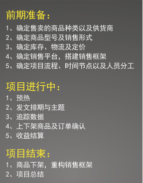 一般来说,有的商品有一定的生命周期。周期到了以后,销售会变得特别困难。这时候就需要转化思路,重新换一批商品或者结束这个项目。不管是怎样的结果,都应总结一下,看看哪里有不足,哪里还可以提高。