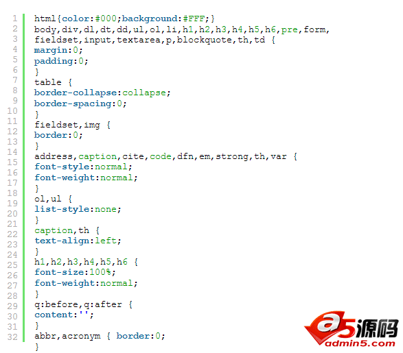 至于哪些元素应该被重设?Yahoo!已经为我们做了比较出的总结。根据雅虎的建议,你需要把这些规则放到一个名为Reset.css的文件中单独引用(推荐这种做法):