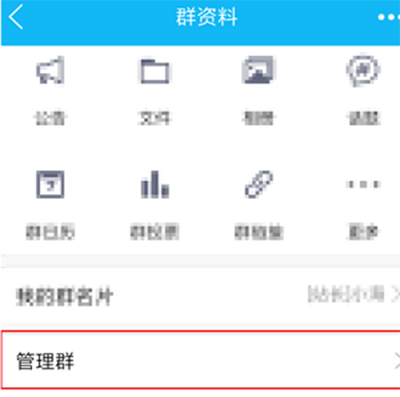 6、如果要qq群里添加小冰机器人,需要安装使用qq最新的测试版,然后进入“群资料”中“管理群”。