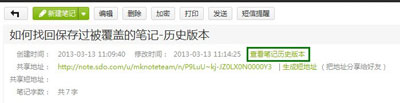 5、进入笔记历史版本页,查找笔记的历史版本,选择需要的版本进行笔记的覆盖。
