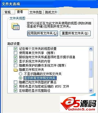 首先用鼠标双击系统桌面中的“我的电脑”图标,在其后弹出的窗口中依次单击“工具”/“文件夹选项”菜单命令,打开文件夹选项设置窗口,单击该窗口中的“查看”标签,并在对应标签页面中选中“显示所有文件和文件夹”项目,同时将“隐藏受保护的操作系统文件”的选中状态取消掉,再单击“确定”按钮,这么一来“Autorun.inf”病毒文件就会显示在各个分区根目录窗口中了;