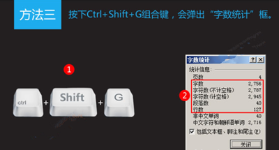 按下Ctrl+Shift+G组合键,会弹出“字数统计”对话框。
