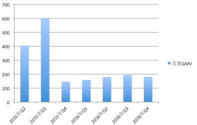 百度季度GMV,2015年Q2、Q3季度包含去哪儿