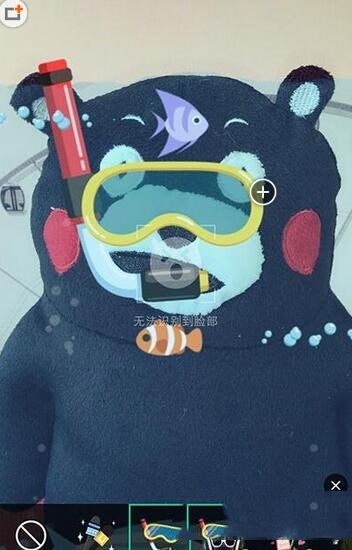 Faceu内置的贴图主要以萌属性居多,不过也有一些...会让你意想不到的特效贴图和道具。不过「Faceu」不支持手动调整贴纸和道具,看下图我的御用 model 脸太大了,有的道具就不合适了。