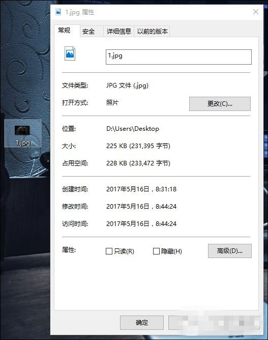1、我们首先看看要修改的图片的大小和像素值,大小225KB,像素值为1280×800;