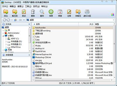 2345好压(HaoZip)是2345旗下解压缩软件,中国用户量最大的压缩免费压缩软件。好压压缩软件是一款强大的压缩文件管理器,是完全免费的新一代压缩软件,好压相比其它压缩软件占用更少的系统资源用,有更好的兼容性,压缩率比较高!