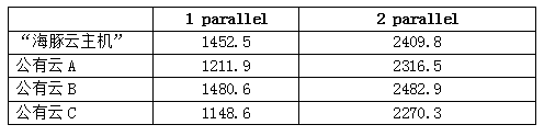 以下将分别从现有知名的三家公有云平台上(以下简称公有云A、B、C),申请同样的配置机型,与“海豚云主机”进行综合比较,测试项以及测试结果如下: