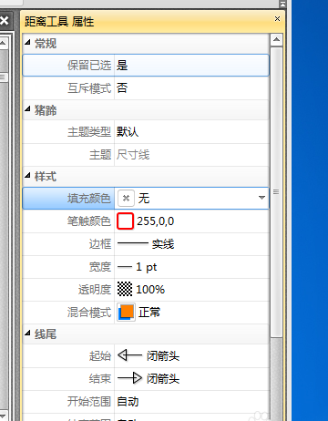 5、接下来的距离工具属性中的填充颜色选择中的设定。