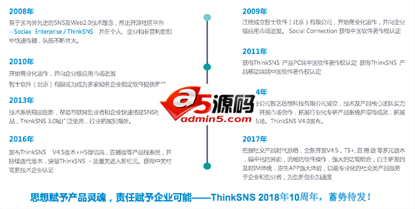 在互联网软件行业快速发展的10年,ThinkSNS作为业内知名的开源社群系统品牌,以专业的软件产品系统供应及软件开发能力,为企业及创业者不断提供优秀软件产品及口碑服务。ThinkSNS从2007年的V1.0 demo诞生到如今的社群系统“ThinkSNS+”、电商系统“极铺”、在线教育系统“eduline”、直播系统“智播”等多款软件系统,历经行业萧条与蓬勃期。每一个互联网行业风口来袭,始终坚持ThinkSNS的品牌文化“稳固迭代,永续创新”,转眼间http://www.thinksns.com/ 域名已经10年了,那些年中国互联网创业潮还刚刚萌芽,ThinkSNS也见证了一代创业者情怀。