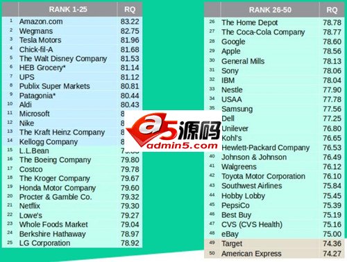这项调查始创于 1999 年。去年 12 月 11 日至今年 1 月 12 日期间,调查组织者对 25800 名美国成人就“最受关注”企业的品牌声誉进行了调查。