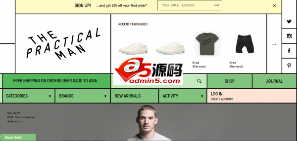 The Practical Man网站使用了表单式的布局,强烈的配色、硬朗的线条、无衬线字体都与网站主营业务(男装、男士用品)的理念很是契合,易给访客留下鲜明、深刻的印象。除此以外,我们常见的商城网站通常都只在网站首屏使用一些非同寻常的设计,其他产品页面采取常规的设计。而The Practical Man在这一点上的处理很是不同,它在整个网站中使用了一致的设计布局,即使是单个产品页面的信息也被放置在一个个定义好的网格(比如价格、颜色、尺寸、概述等等),设计手法很是新颖独特。
