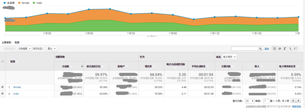 从这些数据上来看,可以说明男性客户质量很差。那么是什么因素所导致的呢?其中的因素可能包括网站目标用户可能就不是男性客户;男性客户进来没有找到符合自己预期的产品;广告投放不精确引来垃圾流量;网站体验对男性客户不友好等。如果你的网站客户群体也出现这样的问题,那么就要好好思考一下是什么原因所导的这种现象,使得网站的现状符合网站的规划,将不符合的用户剔除,满足优质客户的需求。