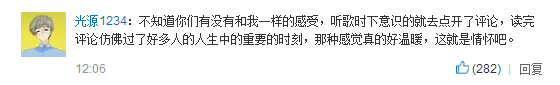 正如音乐人谢春花所说,“写歌的人用歌传递情感,听歌的人在歌声里寻找自己的故事”,正因为有感而发、真情流露,才写得出有灵性的文字,并引起用户强烈的“共鸣”。网友光源 1234 说,“听歌时下意识的就点开了评论,读完评论仿佛过了好多人的人生中的重要时刻”。