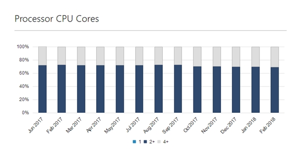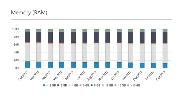 有点类似Steam,微软也在统计Windows用户的硬件配置情况: