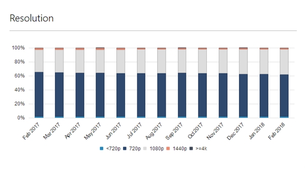 游戏分辨率上720p还多达62%,1080p也不过32%。