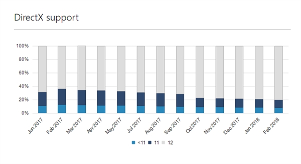 显卡DX版本69%的已经支持最新DX12,DX11 的只剩下17%。