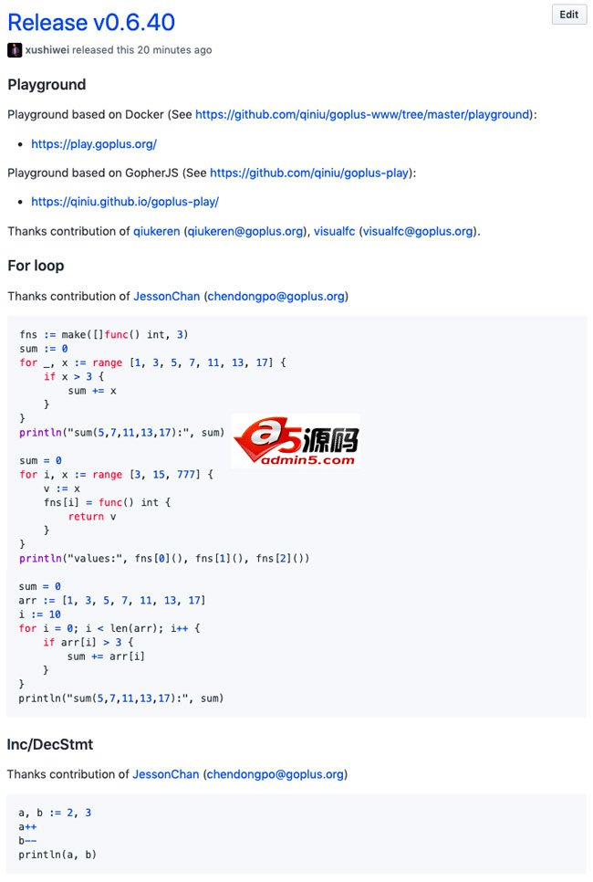 回到 v0.6.40,在这个版本中我们最主要是发布了 Go+ Playground。这样你就可以不必进行本地安装就可以体验 Go+ 的功能了。