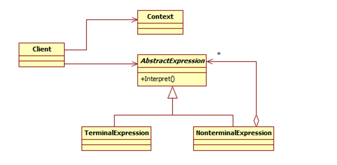 所谓解释器模式就是定义语言的文法,并且建立一个解释器来解释该语言中的句子。解释器模式描述了如何构成一个简单的语言解释器,主要应用在使用面向对象语言开发的编译器中。它描述了如何为简单的语言定义一个文法,如何在该语言中表示一个句子,以及如何解释这些句子。