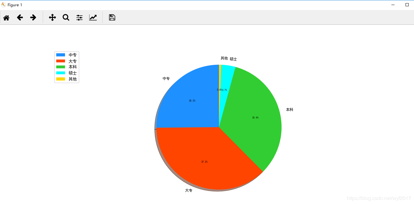 可以看到这个饼状图其他和硕士这2个部分占比很小而且比例相互覆盖,这让人看起来不舒服,所以针对这个问题我们可以调整下字体大小以及布局大小。