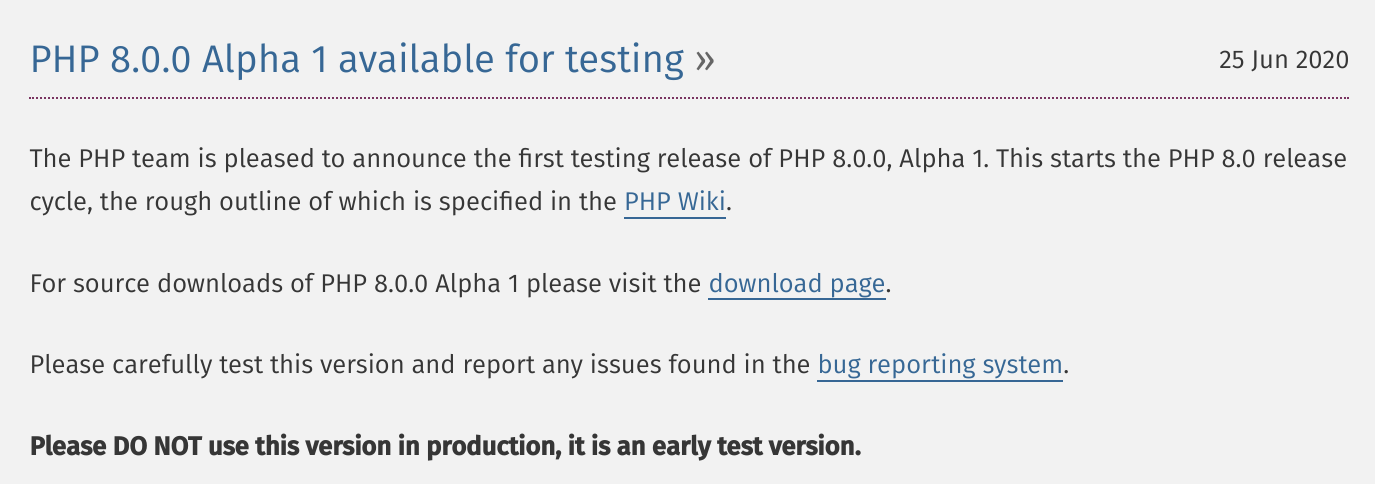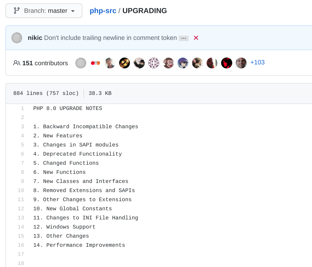 需要注意的是,PHP 8 是一个重大更新版本,带了一些重大变更,所以最好查看 UPGRADING 文档的相关事项。不过实际上,其中许多重大变更在之前的 7.* 版本中已经引入,因此,如果你一直保持最新版本,那么升级到 PHP 8 也影响不大。