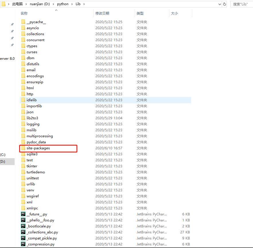 找到“site-packages”文件夹并打开,下载的库包就出来了