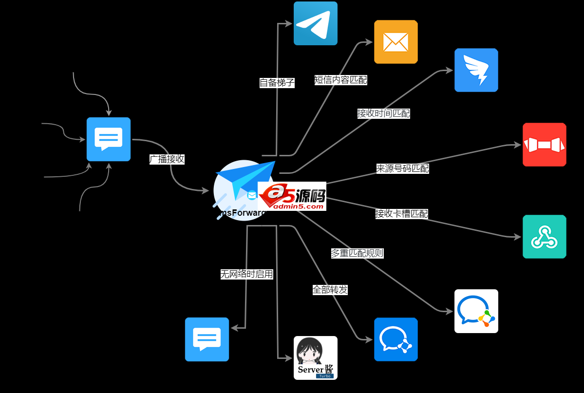 短信转发器——监控Android手机短信并根据指定规则转发到其他手机:钉钉机器人、企业微信群机器人、企业微信应用消息、邮箱、bark、webhook、Telegram机器人、Server酱等。