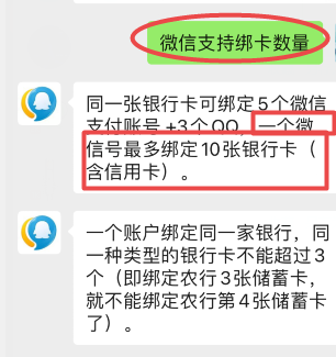 4、输入“微信支持绑卡数量”,就能看到,一个微信号最多绑定10张银行卡,包含信用卡。