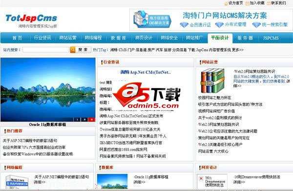 淘特JspCms是一套基于Java技术的内容管理系统;本系统拥有出色的性能,产品经过大访问量下严格压力测试,可以满足一台普通server环境下提供 百万级的访问量,系统提供高效的索引技术,搜索数百万级的文章内容仅在毫秒之内,国际化utf-8编码,支持多国语言,真正一套国际化门户网站解决方案