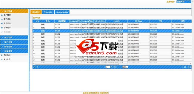 花田客户关系管理系统HCRM功能包括客户管理、订单管理、客户关怀、分析统计、系统设置
