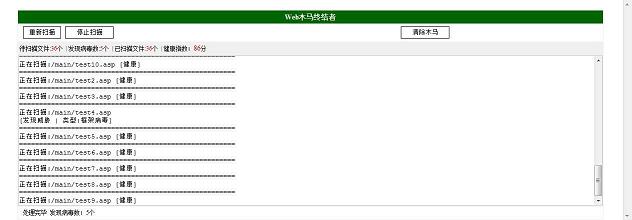 Web木马终结者根据平时使用的杀毒软件思路编写,主要针对网站被挂马时使用。采用Javascript编写,另外使用了Ajax技术辅助扫描。