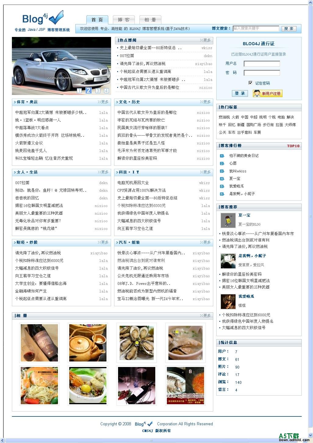 BLOG4J是 基于 java / jsp 技术构建的博客系统,不同于asp、php语言的博客系统,blog4j采用三层架构(展现层、业务层、数据层)、基于WEB 2.0相关技术、且支持分布式集群化部署,有着易扩展、高性能等特性,是中大型博客网站的理想博客系统解决方案。