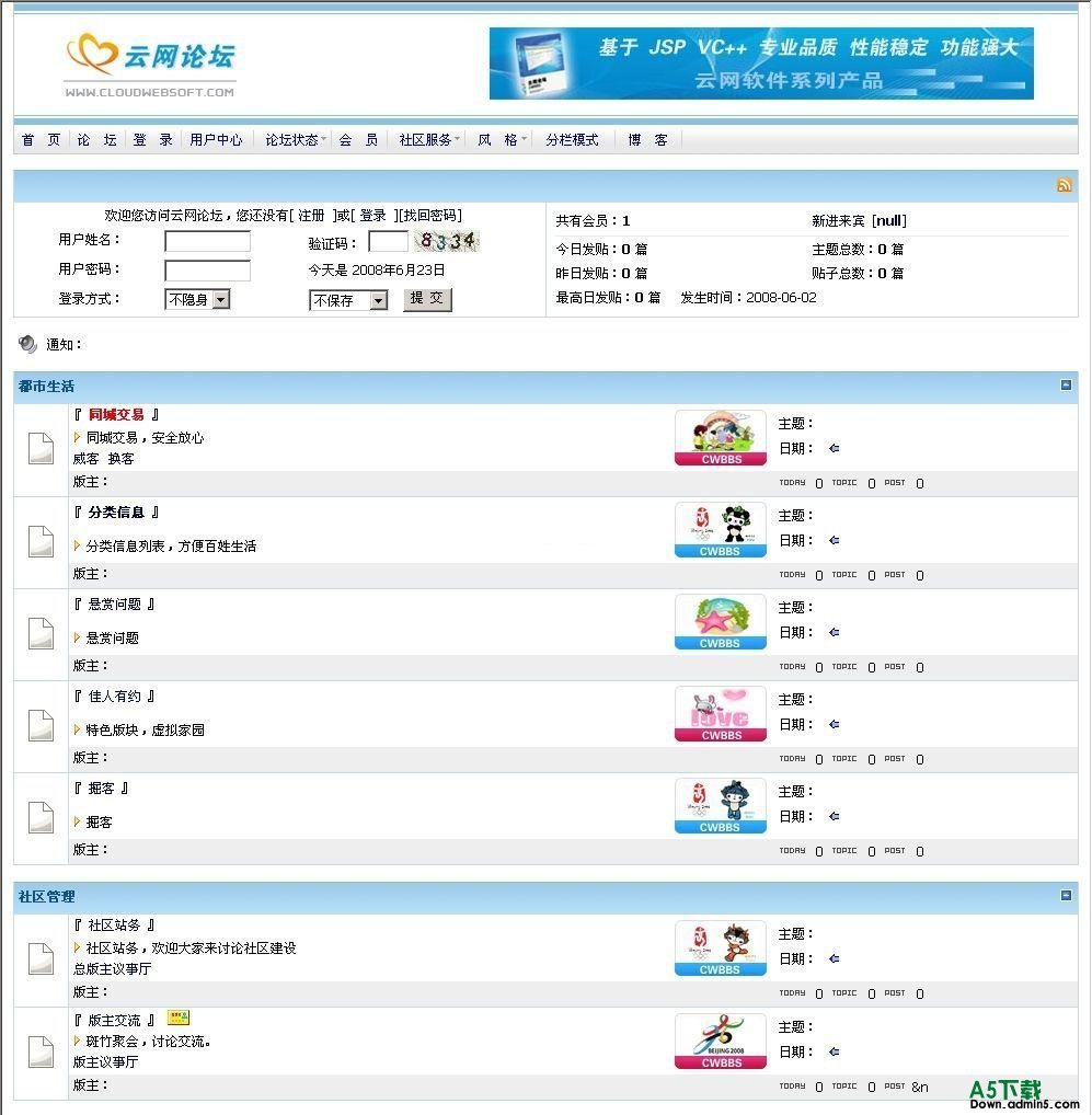 云网论坛CWBBS2.5相比2.4RC版变化很大,文章发布、网站群部署、论坛界面DIV+CSS等都有了很大的提高。