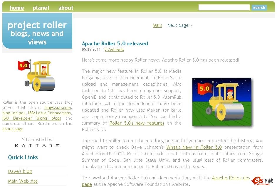 Roller 是一个全功能的多用户博客平台,于2002年首发,采用Java语言开发,设计精巧,源代码是很好的学习资料。它支持weblogging应有的特性如:评论功能,所见即所得HTML编辑,TrackBack,提供页面模板,RSS syndication,blogroll管理和提供一个XML-RPC 接口。目前的最新版本是5.0。
