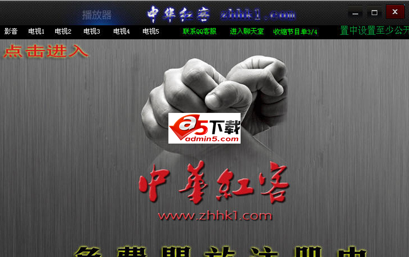 中华红客全球网视由5个直播网站电视台组合!3000个高清电视,高清电影,绿色版,免安装,永久更新节目,国内/国外/体育/保证电视台天天更新的,国内四大杀软认证,本软件由易语言开发。