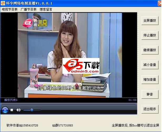 欢迎使用环宇网络电视直播,本程序包括中央台,各省台,地方台,外国台等等,全高速高清频道,采用P2P技术,纯绿色软件,不需要安装直接解压打开就能收看节目。