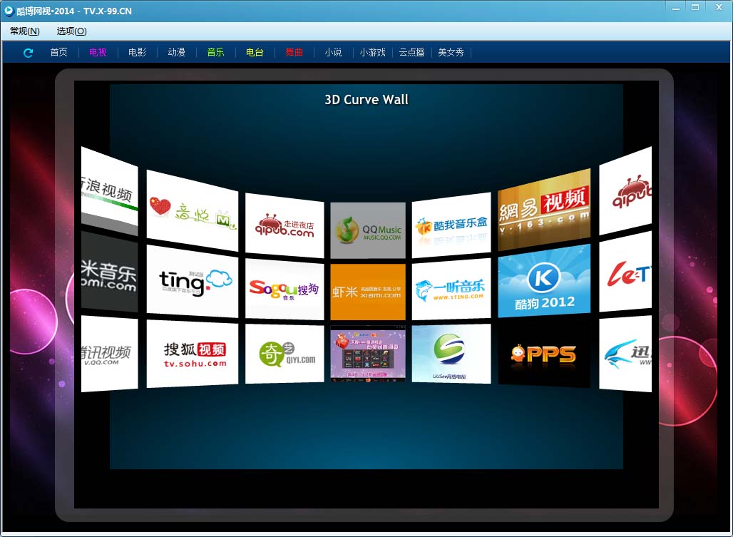 酷博网视聚合了PPTV网络电视、CNTV电视、64码电视、凤凰台等高清电视节目;提供了奇艺影音、迅雷看看、搜狐视频等大量影视资源;汇集了一听音乐、音悦台MV、QQ音乐、酷我音乐盒、百度音乐盒、酷狗电台、豆瓣电台等顶级音乐频道。影音盛宴,精彩不断!在这个版权意识淡薄的时代,想通过网络看电视、电影,听歌,都必须忍受大量无聊甚至低俗的广告,像CNTV、奇艺、迅雷看看等均不能免俗。酷博网视绿色婉约,把网友们从广告的汪洋里拯救出来,不必再安装任何影音软件,无须任何等待,点击即可观赏电影电视,聆听天籁之音。绿色影音,耳目一新!自己可以选择自己喜欢的主题。