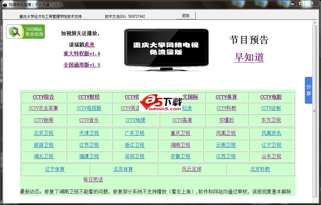深度网络电视直播(不计流量)软件是一款应用于电脑的软件,可提供cctv及地方卫视等多个频道的网络直播,界面简洁,并且对于那些以流量为套餐的大学学生来说,是不错的选择,可以打开听音乐,看比赛,因为不计流量(以学校的流量查询为准,使用时需要登录网络),另外还有许多国外频道(需要计算流量),比如日本韩国等,对于学习小语种的同学来说也是相当不错的 。