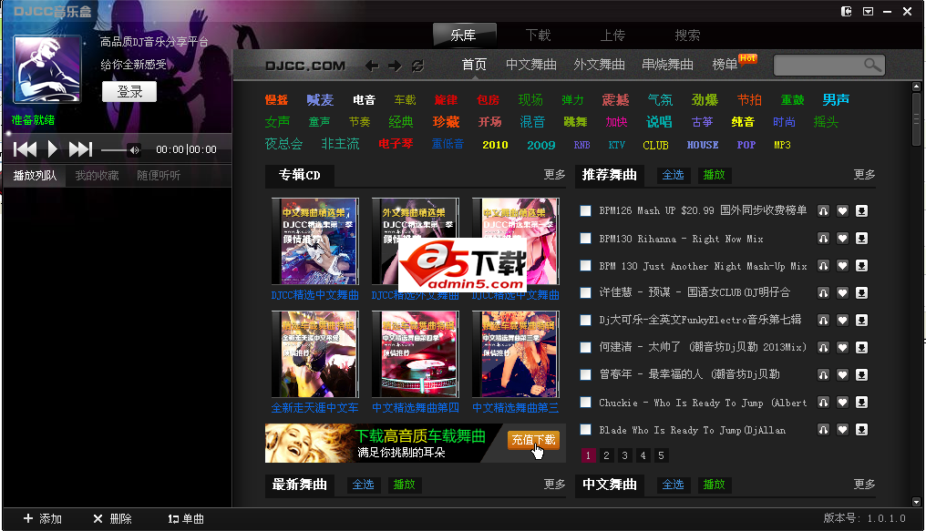 djcc音乐盒是djcc舞曲网开发的一款dj舞曲音乐在线试听,高音质下载,舞曲分享软件,用户可以在软件里轻松找到自己喜欢的dj舞曲,并且下载到电脑;原创作者可以发布自己的作品到网上,提供给用户试听及下载。