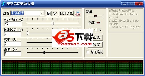 该软件小巧精悍,只有3个文件,虽然说设计实时Mic混响功能并不是什么复杂的工作,但是之前却没有人能(或许是愿意)做这个软件。软件资源占用小但功能很丰富,里面可以选择不同的混响方式,实用性非常强,而且操作也非常的简单!!