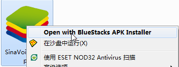 3、如果你看到的不是上面说到的图标样子的话,可以在APK文件上,点击鼠标右键并选择“open with BlueStacks APK Installer”,同样也能安装,如下图: