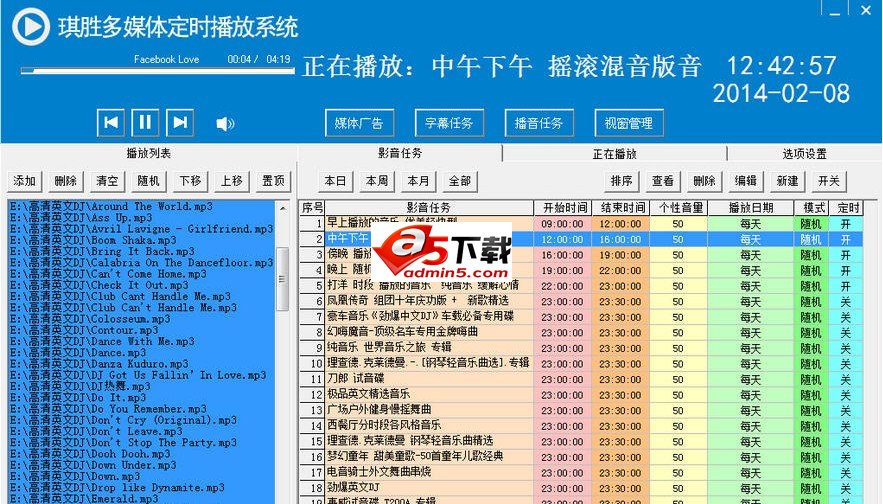 3、定时播放任务支持顺序播放、循环播放与随机播放,支持闲时播放预设媒体广告内容。