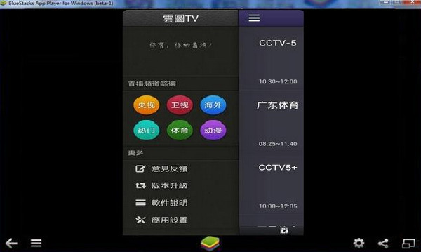 云图TV采用国内领先的网络电视直播技术,可观看包括CCTV-5,CCTV-6,CCTV10,湖南卫视、浙江卫视、江苏卫视、广东体育、凤凰中文、凤凰资讯、翡翠台、国家地理等800个热门节目