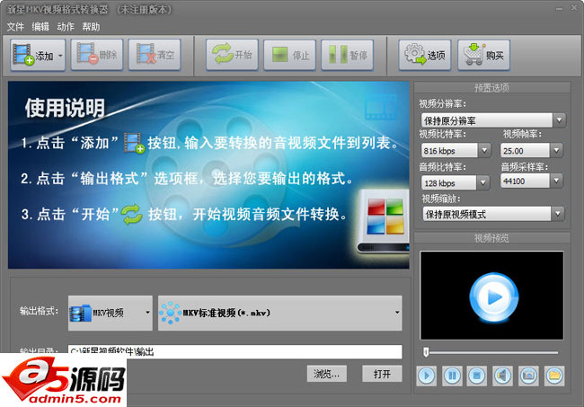 新星MKV视频格式转换器是一款功能强大、操作简单的MKV高清视频格式转换工具。可以帮助您将MKV视频转换成任意格式的视频。比如MKV转换为AVI、WMV、VOB、MPG视频。也可以将MKV格式转换为MP4、3GP视频格式。同样可以将MKV转换为FLV、SWF网络在线视频。如果需要将MKV转换为DVD、SVCD、VCD光盘视频,本软件同样可以满足您的需求。当然本软件同样支持将网络上流行的视频格式转换为MKV格式视频。比如AVI、WMV、DV、MOV、FLV、MKV、MPG/MPEG、VOB、SWF、3GP、MP4视频转换为MKV视频。并且支持MTS、M2TS,MOD、TOD等高清摄像视频转换为HD高清晰MKV视频。本软件转换速度快,支持多CPU,对高级用户可以定制音频和视频各项参数,初级用户可以采用默认操作得到最佳视频效果。支持批量转换。