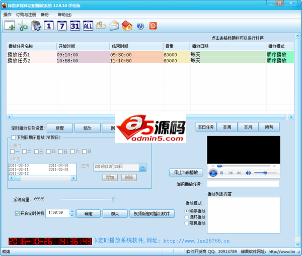 高度智能,时间精确,可以设置多达1024组播放列表,是目前市场上最方便易用的一款智能播放软件.