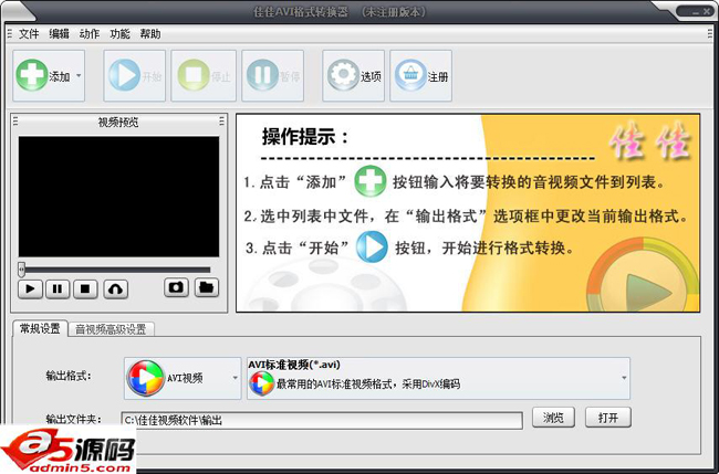 佳佳AVI格式转换器是一款专业的并且操作简单的AVI、MP4视频格式转换器。佳佳AVI格式转换器可以方便的将各种流行的视频格式转换AVI、MP4、HD高清视频格式。如:将RM、RMVB、MP4、MKV、3GP、DivX、XviD、AVI、VOB、DAT、VCD、DVD、SVCD、ASF、FLV、SWF、MOV、QT、MPEG、WMV、MTS、TS、M2TS、DV、MOD、TOD等视频格式,转换为AVI,DivX,XviD,H.264,MPEG等视频格式。也看将AVI视频格式转换为3GP、MP4、MPEG、MPG、ASF、FLV、SWF、WMV、MKV等数百种视频格式。