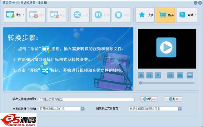 蒲公英MPEG4格式转换器是一款功能强大、操作简单的MPEG4和MP4格式转换工具。如果您需要将各种流行的视频格式转换为MPEG4视频格式,那么本软件一定可以满足您的需求。转换后的视频可以在支持MPEG4的各种流行的移动设备上完美播放,比如各个型号的iPhone、iPad、iPod、各种安卓手机、支持MPEG4格式的高清液晶电视和支持MPEG4格式的高清DVD上播放。另外软件同样可以将您下载的MP4或MPEG4视频转换为您需要的流行视频格式,比如将MPEG4转AVI、MPEG4转MPG、MPEG4转FLV、MPEG4转换为MP3、MPEG4转SWF、MPEG4转FLV、MPEG4转VOB、MPEG4转WMV、MPEG4转MOV、MPEG4转VCD等等格式都是支持的。这样您的视频就可以在任意地方随意欣赏了。本软件针对各种CPU进行优化,采用国际最流行的编解码技术,转换效率极高,转换后的画面完美、清晰,支持各种版本的Windows系统,支持批量转换、转换完成后自动关机等功能,支持更换软件皮肤。