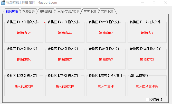 1.视频转换功能,基本涵盖市面所有格式的互转(flv,avi,mkv,ts,mp4,mov,wmv,vob,m3u8流媒体切片)