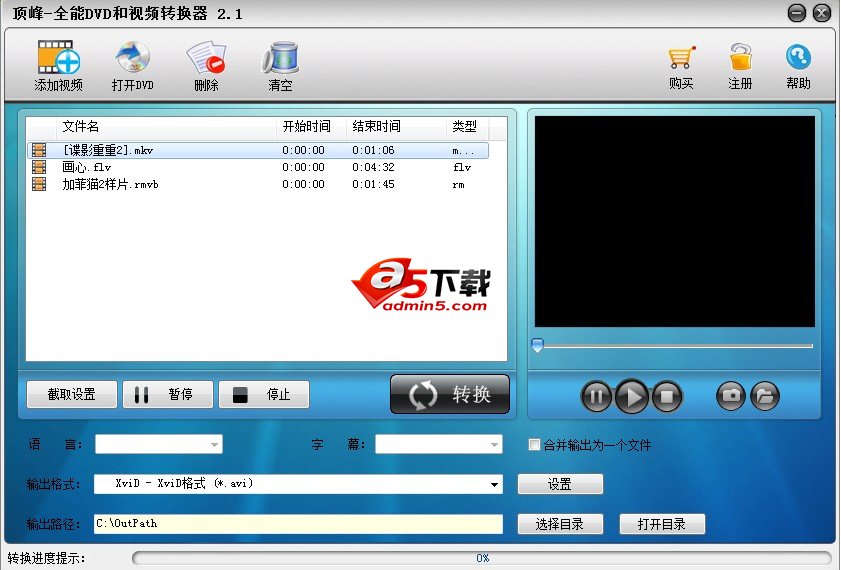 《顶峰-DVD和视频至AVI转换器》是一款功能强大、操作简易的全能AVI视频转换软件,支持将DVD光盘和网上下载的几乎所有流行视频格式,如RM、RMVB、AVI、MPEG、MPG、MKV、DAT、ASF、WMV、FLV、MOV、MP4、3GP等视频文件,编辑转换为AVI,DivX,XviD,MJpeg视频格式,支持转换输出高质量的文件,而且转换速度非常快,轻松地实现在车载碟机、MP4机和手机等媒体设备中播放影音,可以随意享受影音的乐趣。