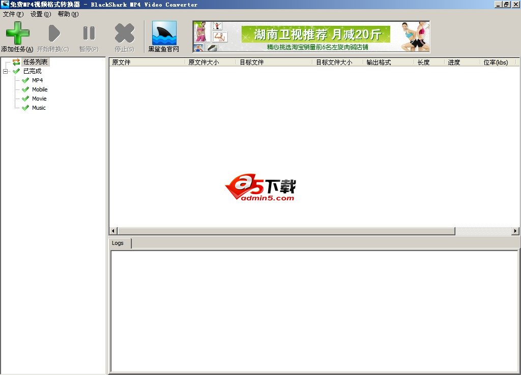 黑鲨鱼MP4视频格式转换器针对MP4优化了2种输出配置,支持多种MP4设备,简单易用、绿色环保、功能强大的视频、音频、图片格式转换器。